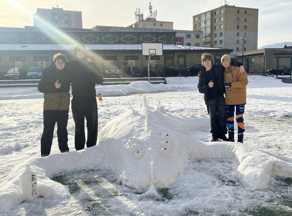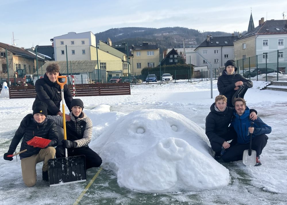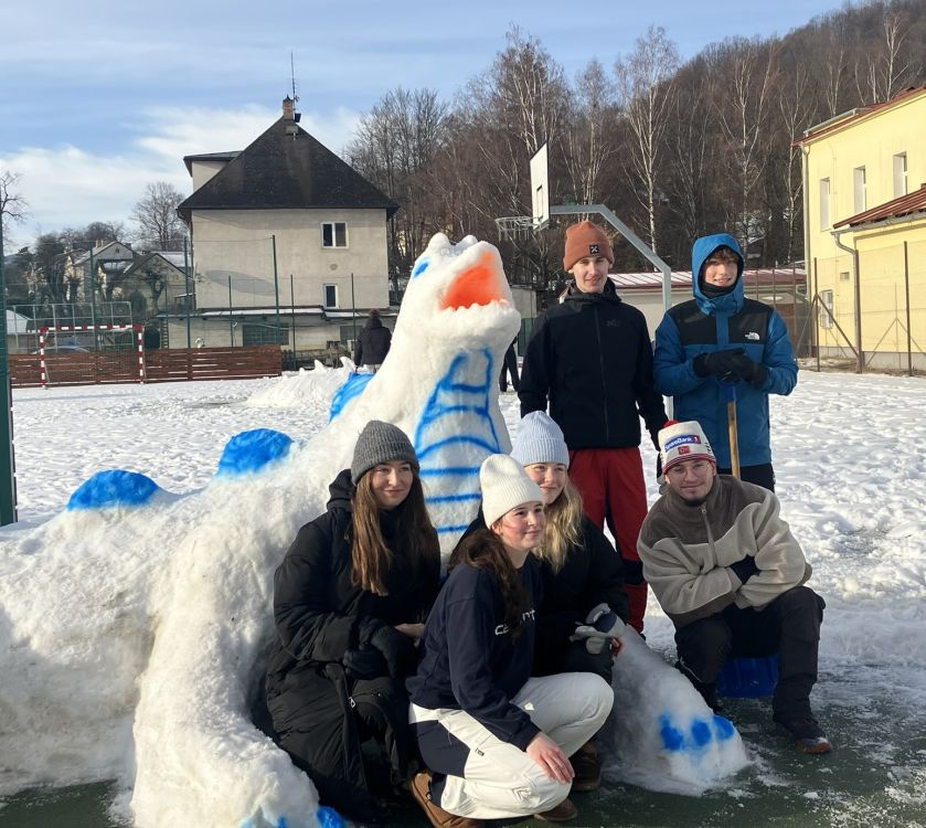 Studentská soutěž ve stavbě sněhových soch má na našem gymnáziu dlouholetou tradici, nicméně je to akce, jejíž uskutečnění podléhá rozmarům počasí a změnám klimatu víc než jiné… Po několika na sníh hubených letech se nám konečně povedlo vychytat termín, který sice nepřinesl podmínky ideální, nicméně dostačující k tomu, aby vznikla opravdu úchvatná díla!